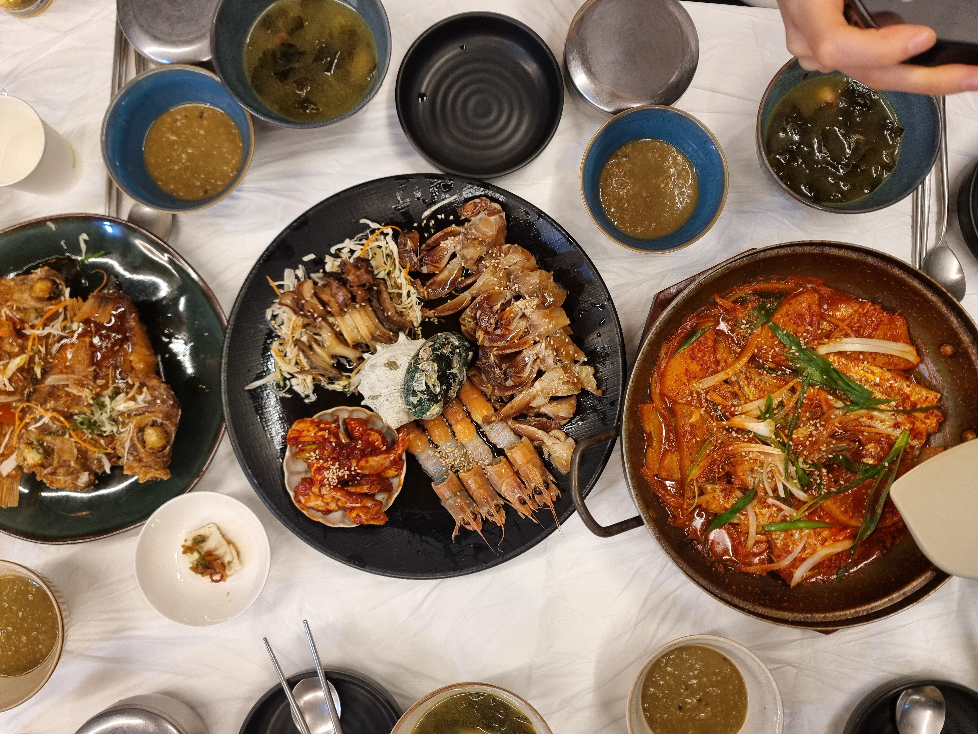 저녁은 '제주 삼다장'이라는 식당에서 간장게장과 갈치조림 정식세트로 먹었다.갈치살이 싱싱해서인지 너무 맛있다고 다들 잘 먹는다.