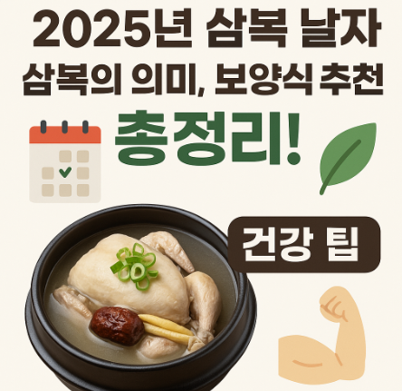 2025년 삼복을 건강하고 알차게 보내기 위해 오늘 소개한 정보들을 참고해 보세요. 특히 보양식과 건강관리 팁을 꾸준히 실천한다면, 무더위도 문제없답니다!